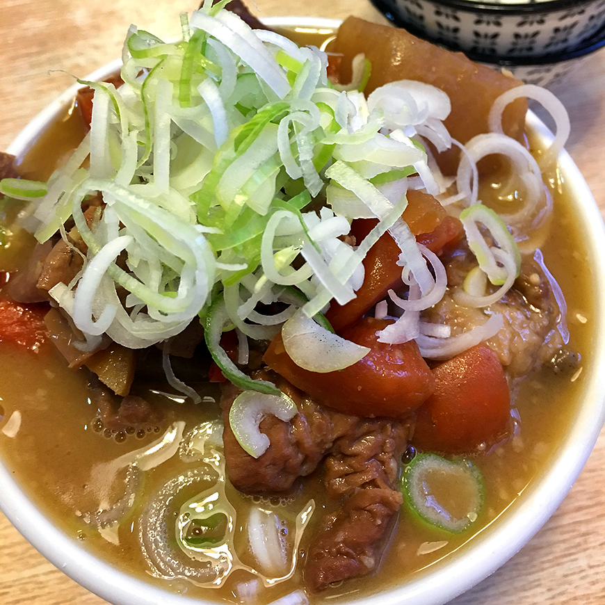 「もつ煮」は佐野らーめん店では普通のメニュー。