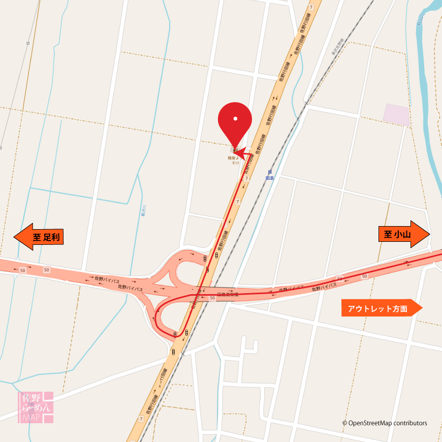 県道7号にぶつかりますので、佐野市街方面に左折するとすぐです。
