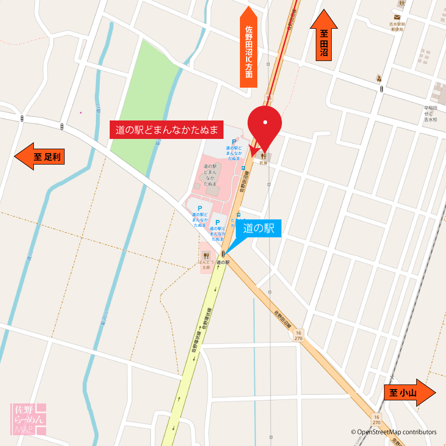 対面には日本一の売り上げを誇る「道の駅 どまんなかたぬま」があるのもわかりやすい。